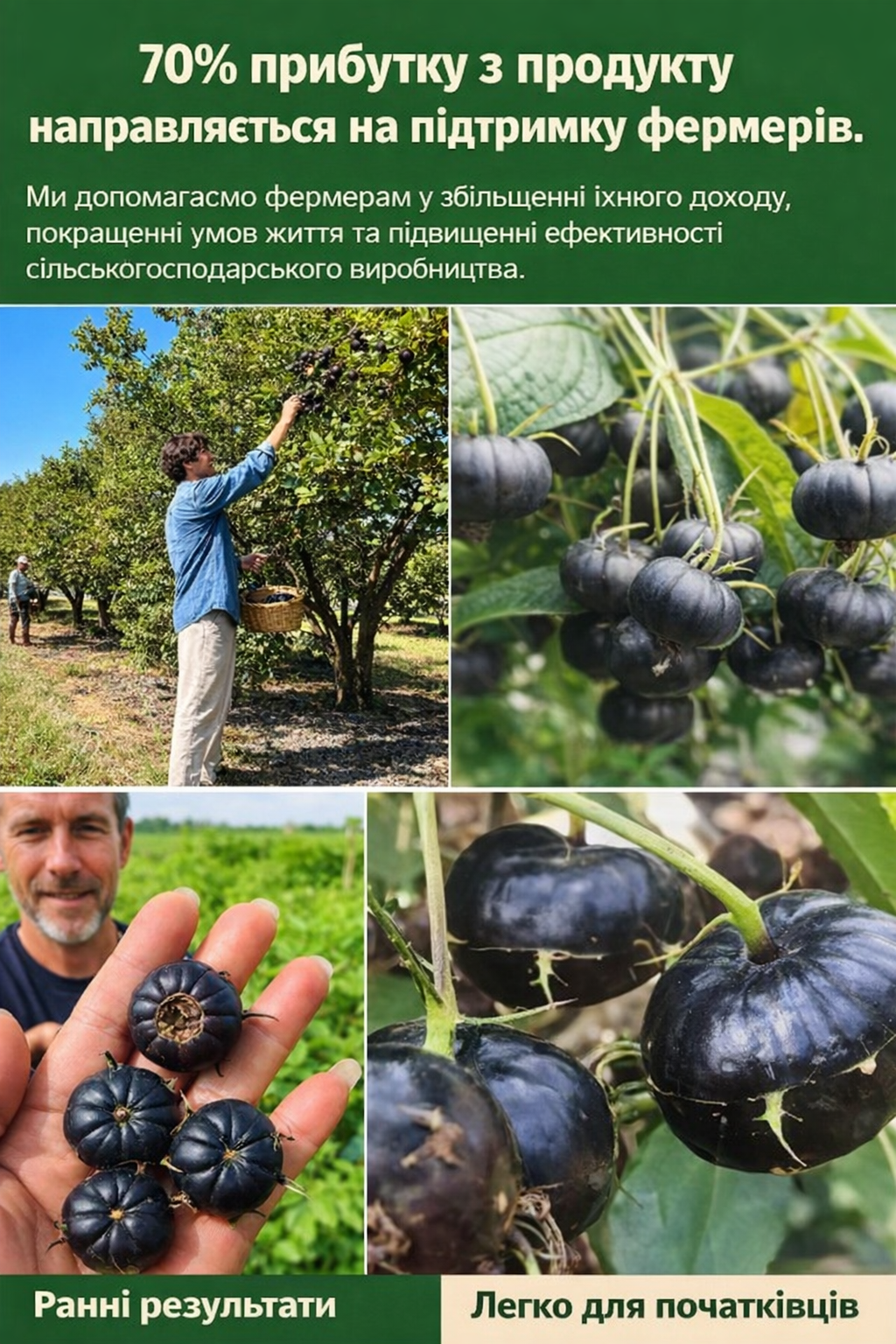 На відміну від звичайних сортів, цей женьшень дає солодкі та соковиті плоди, які є природним джерелом енергії та зміцнюють імунітет.